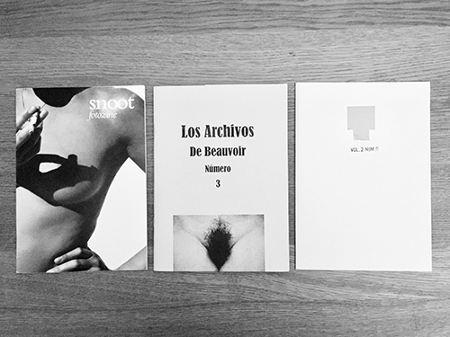 // FANZINES • HÁZTELO TÚ MISMO VOL.2 (febrero 2010) // web • SNOOT fotozine 01 (marzo 2012) // web • LOS ARCHIVOS DE BEAUVOIR VOL.3 (diciembre 2014) // web